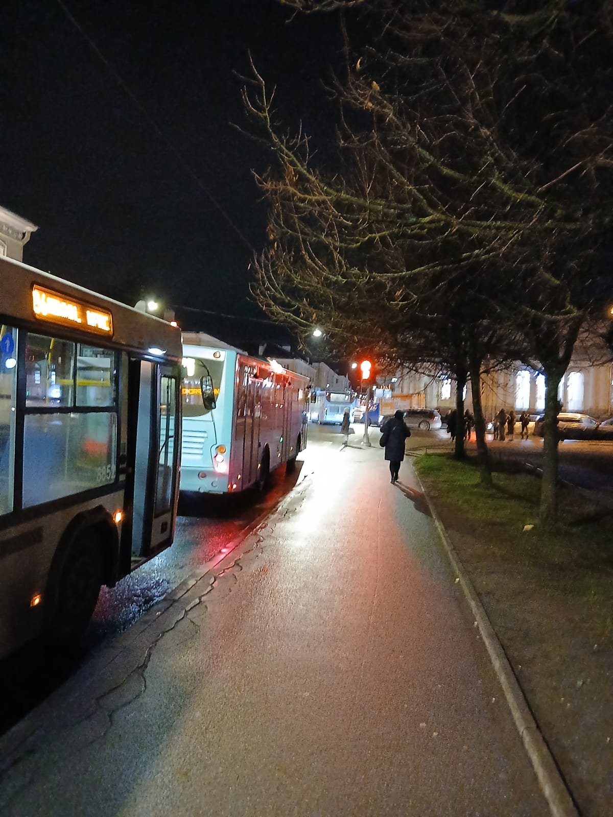 Как передаёт корреспондент "ДП", пассажиры в центре Пушкина массово покидают общественный транспорт и идут пешком. На 18:51 пробки составляют 7 баллов.