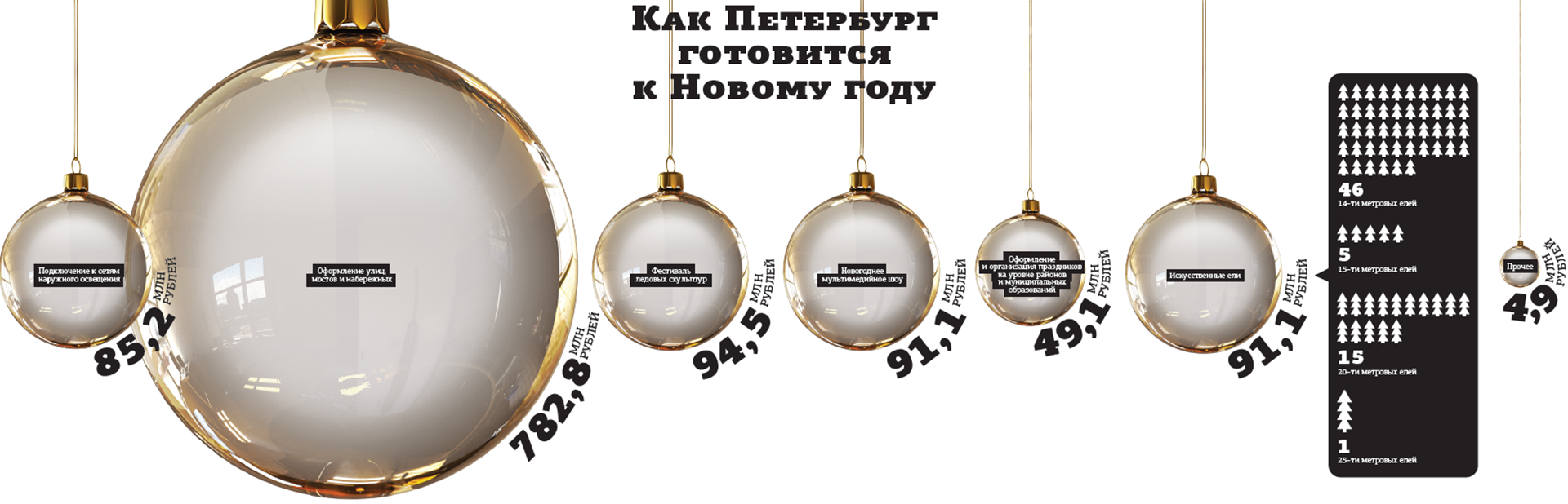 Ничего странного в этом, впрочем, нет — конкурсные процедуры дело небыстрое. Так что чиновников стоит скорее похвалить за предусмотрительность. Другое дело, что уже в конце октября петербуржцы начали замечать в магазинах и торговых центрах города гирлянды и прочий тематический декор.