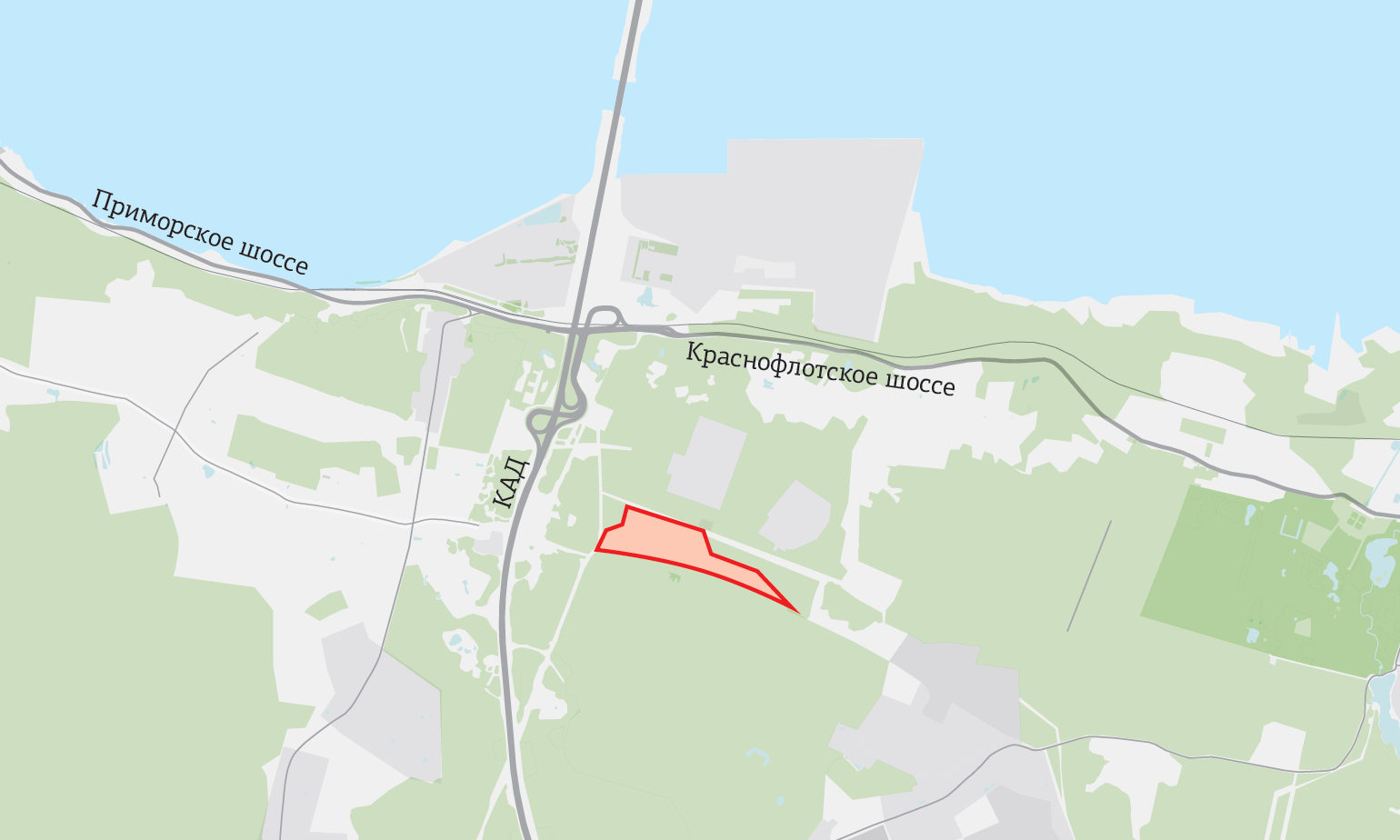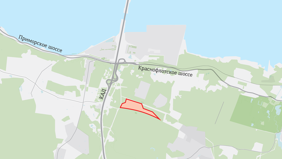 Участок находится на территории предприятия "Плодоягодное", это недалеко от центра Ломоносова, развязки КАД с Краснофлотским шоссе и примерно в 2 км от Финского залива. Собственник земли не раскрывается.
