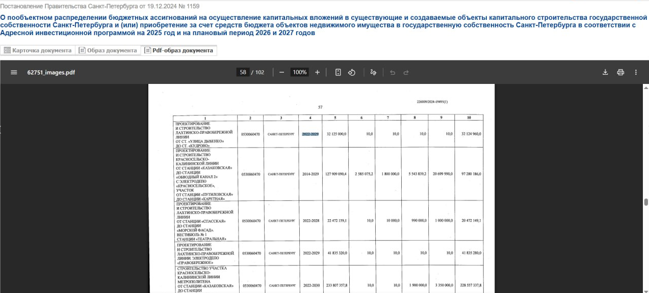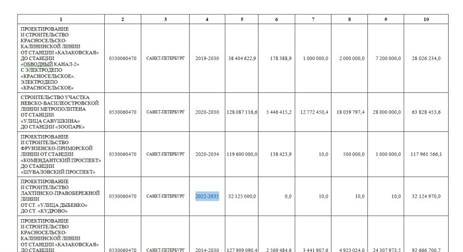 В документе прописаны объекты здравоохранения, образования, транспортной инфраструктуры, строящиеся и проектируемые в Северной столице. Среди прочих там указаны и новые участки метрополитена, причём изменения касаются не только финансирования, но и сроков окончания работ. Они сдвигаются на более чем десятке объектов: