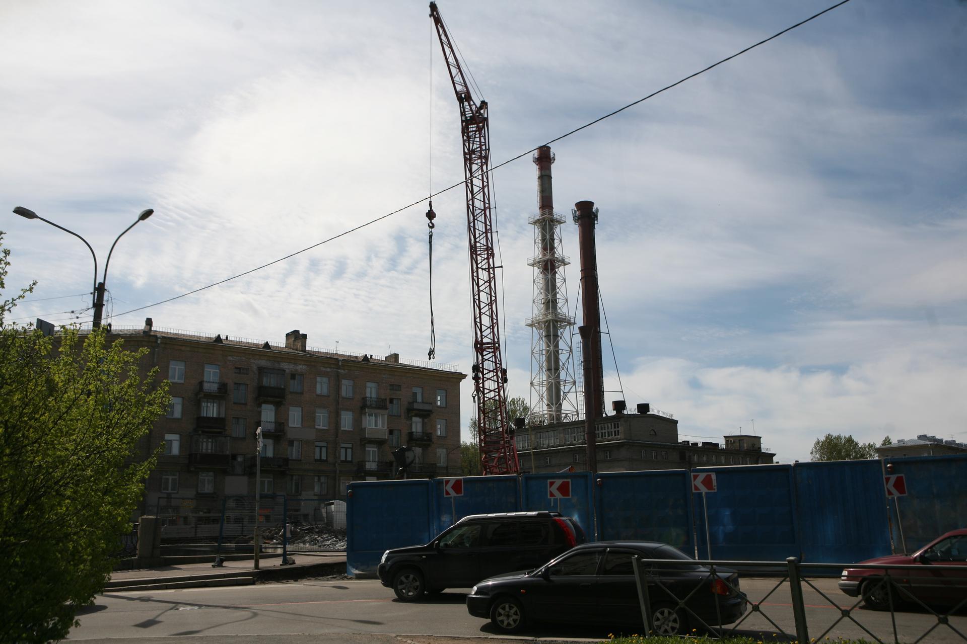 Россия, Санкт-Петербург. Демонтаж старого и строительство нового Коломяжского моста через Черную речку.