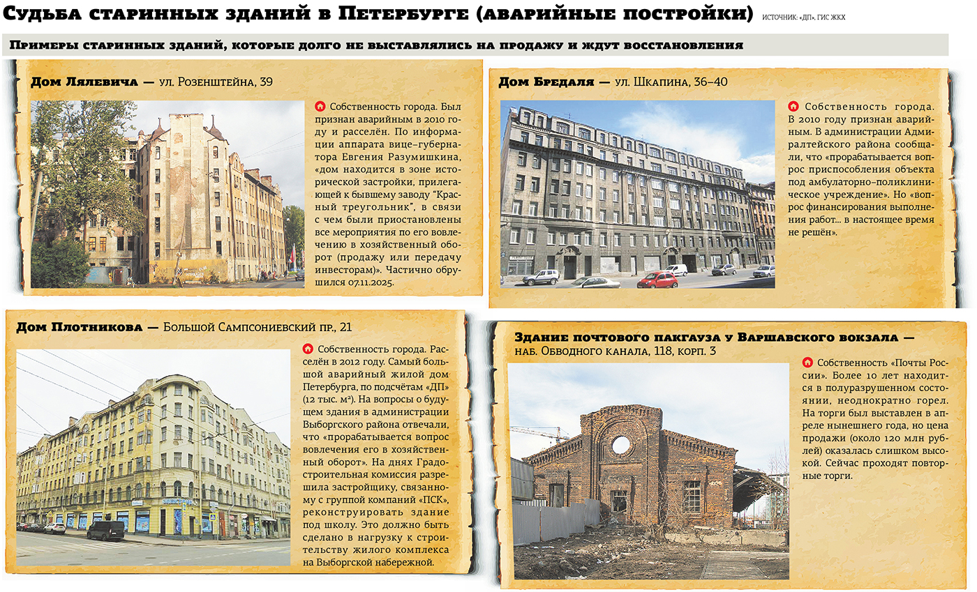 Из–за непоследовательных и экономически не подкреплённых решений доходные дома и другие старинные здания в Петербурге не находят своих инвесторов, рискуя, как дом Лялевича, превратиться в руины.