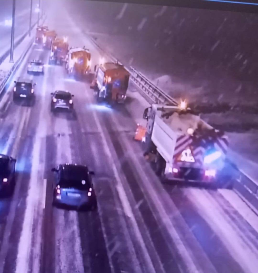 Для поддержания высокой пропускной способности и предотвращения образования наледи на трассе была развернута усиленная смена, включающая 24 комбинированные дорожные машины и 8 тракторов — всего свыше 30 единиц крупной спецтехники.