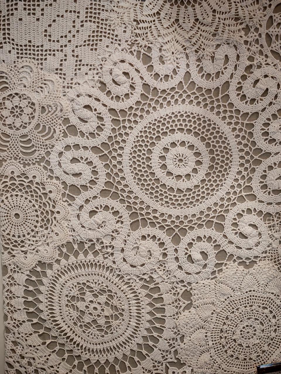 Материал — узоры, схемы, искали в библиотеках и в архивах. Что-то приносили люди — местные жители. У Татьяны собралась огромная коллекция старинного, она его называет "рваненьким", кружева. Это планировалось отдать в музей — но пожар всё уничтожил. Сейчас фонд накапливают заново.