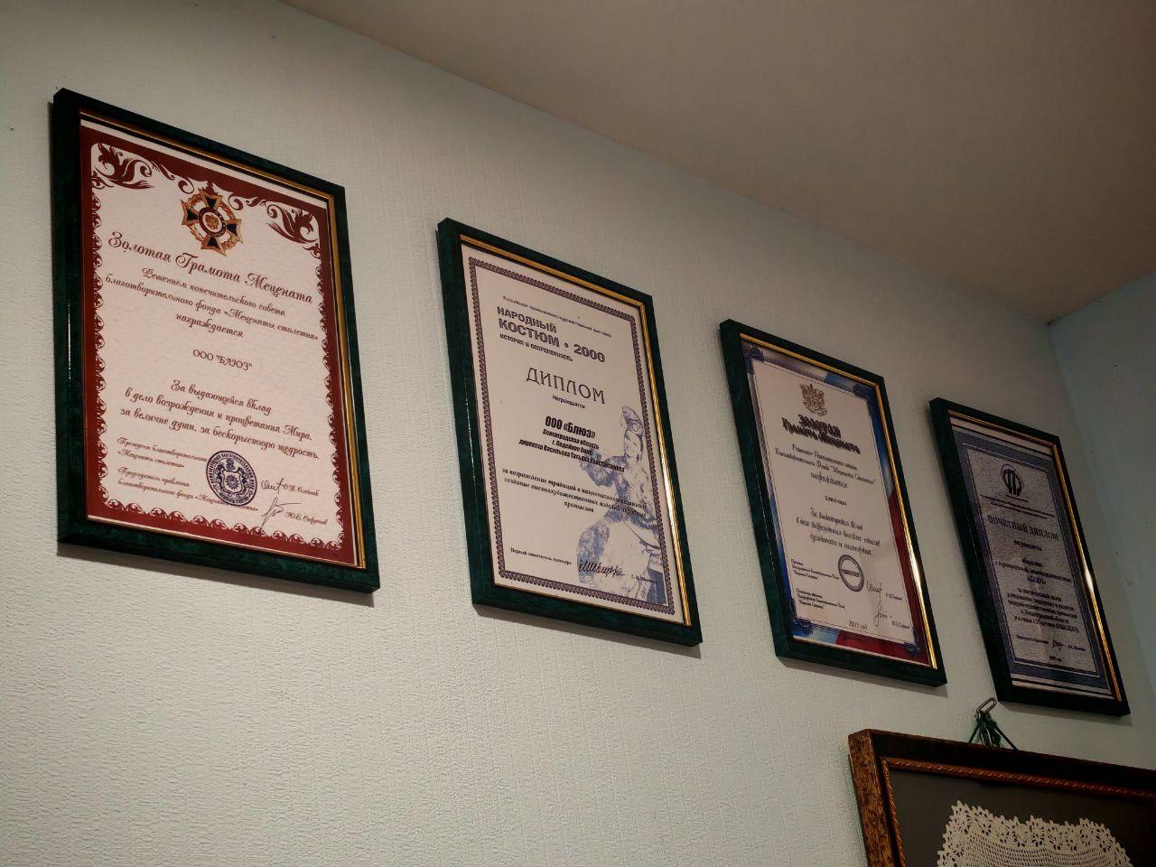 На стенах магазина, точнее, салона, висят дипломы. У бренда множество всевозможных наград. 300 изделий имеют статус изделия народных художественных промыслов признанного художественного достоинства.