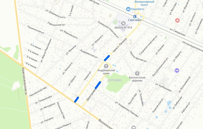 Согласно тексту распоряжения ГАТИ, далее, с 26 по 30 ноября, закроют Дмитриевскую улицу. Водителям будет недоступен участок от улицы Академика Павлова до Андреевской улицы. В связи с этим введут одностороннее движение по улице Академика Павлова от Дмитриевской улицы к проспекту Ленина.