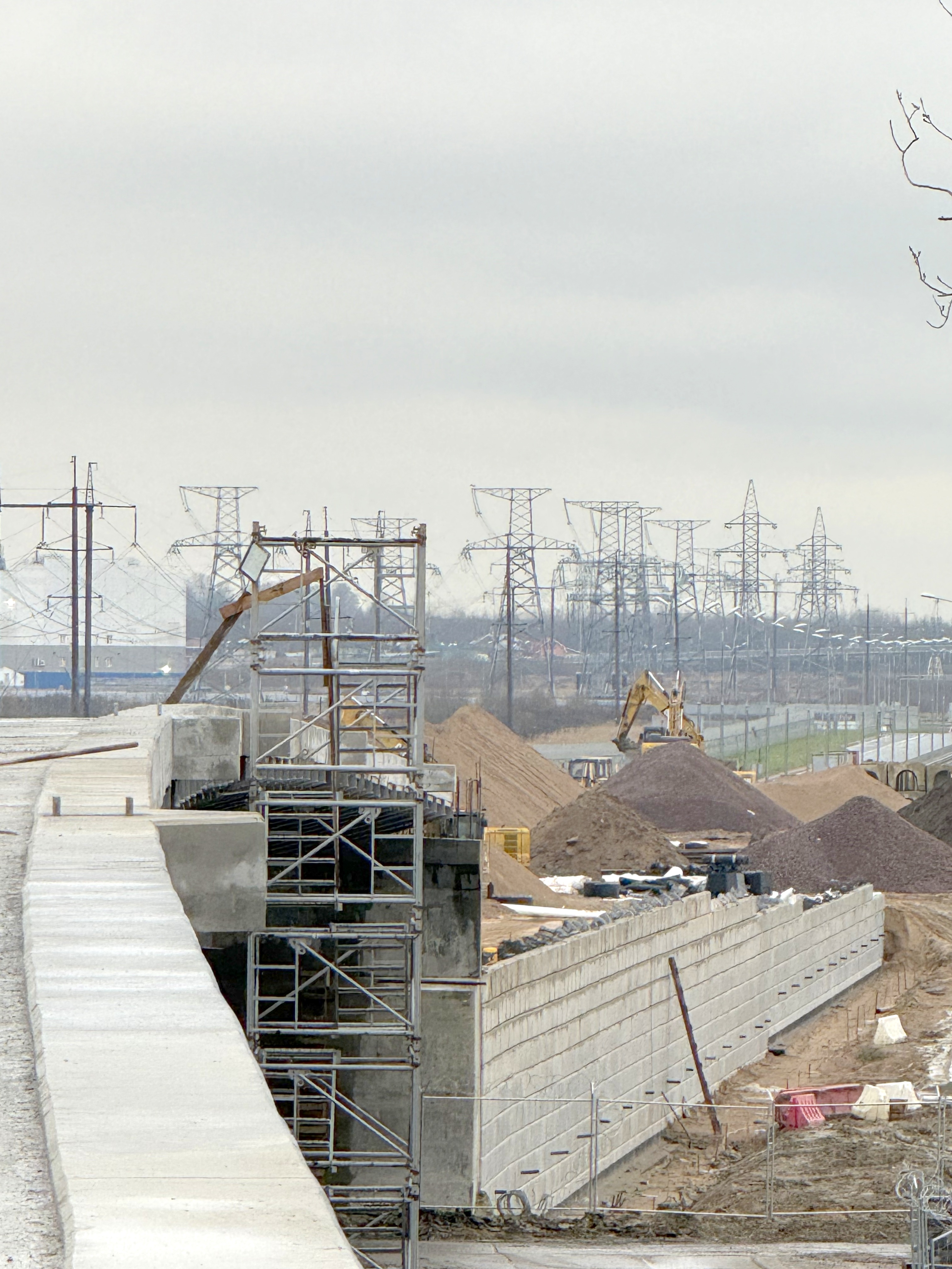 Журналистам также показали возведение ещё одной крупной развязки с шоссе Подбельского. В настоящее время здесь переустраивают инженерные сети. "ДП" писал, что в связи с этим по шоссе ограничили движение до июля 2026 года.