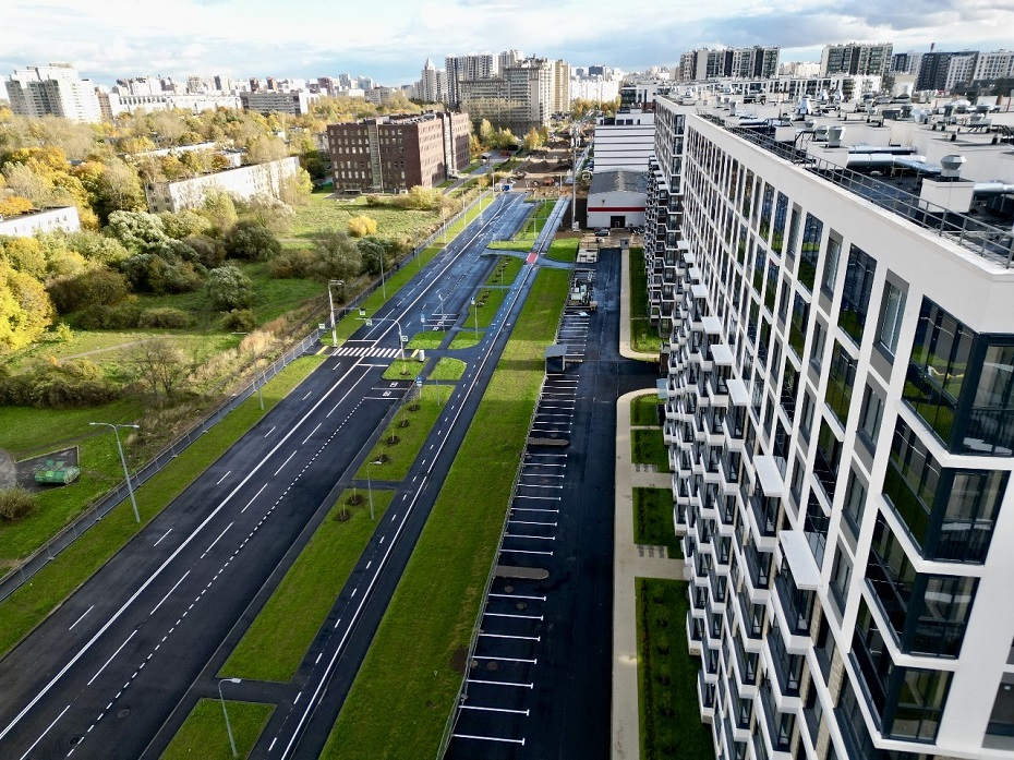 Новый участок длиной 514 метров обеспечил транспортную доступность жилого комплекса "Сенат" и повысил связность дорожной сети Московского района. Дорога оборудована двухполосным движением, велодорожкой, тротуарами и парковочными зонами. Наличие парковок особенно важно в условиях плотной городской застройки, обеспечивая жителям удобство и безопасность при размещении транспорта.