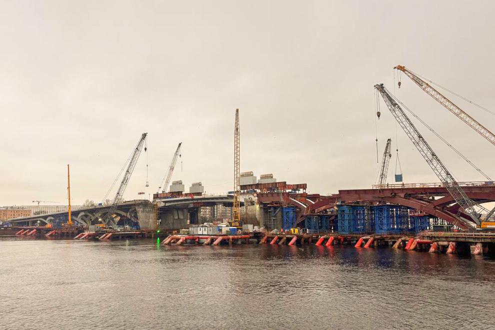 Как рассказали в пресс-службе Смольного, конструкции пролётов собрали на стапеле на левом берегу Невы.