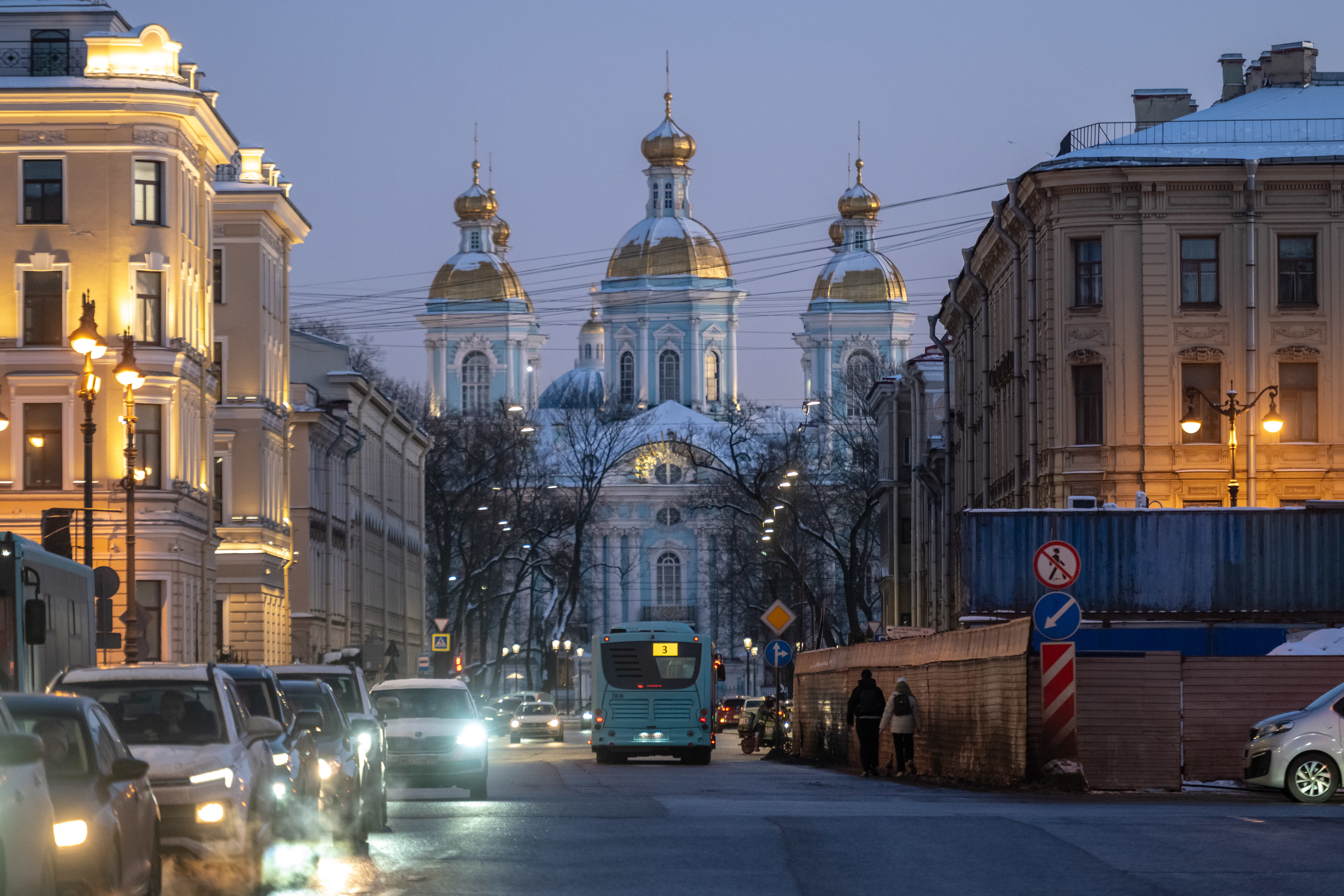 Вид на Николо-Богоявленский морской собор в Адмиралтейском районе Петербурга.