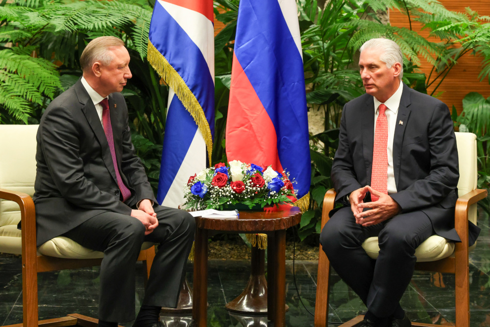 Губернатор Петербурга Александр Беглов и Президент Кубы Мигель Диас-Канель Бермудес провели встречу в рамках официального визита делегации города на Кубу, сообщили в Смольном.