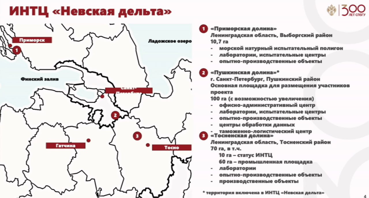 Инновационный научно-технологический центр (ИНТЦ) "Невская дельта" будет развиваться на трёх площадках, расположенных в Петербурге и Ленобласти.