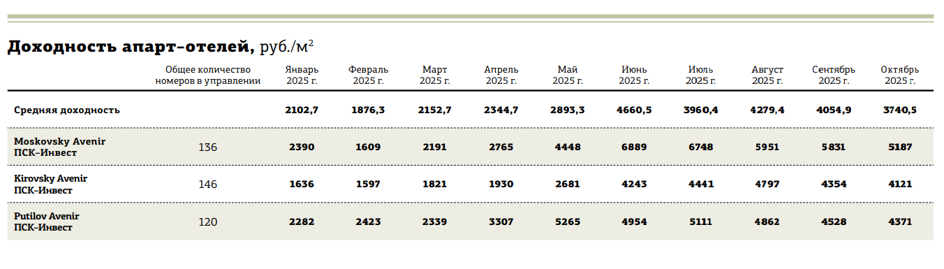 В сезон один апартамент в петербургском апарт–отеле способен приносить владельцу внушительные суммы: от 150 тыс. до 190 тыс. рублей выручки в месяц. Именно эти цифры чаще всего звучат в презентациях девелоперов и управляющих компаний, формируя у потенциальных инвесторов ожидание высокой доходности и пассивного заработка без необходимости личного участия в операционной деятельности.