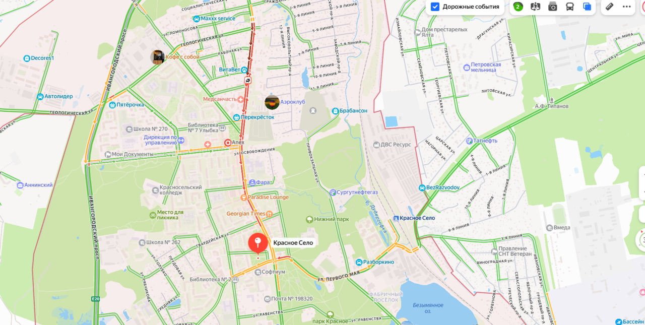 Пробки в Красном Селе вечером 29 ноября 2025 года.