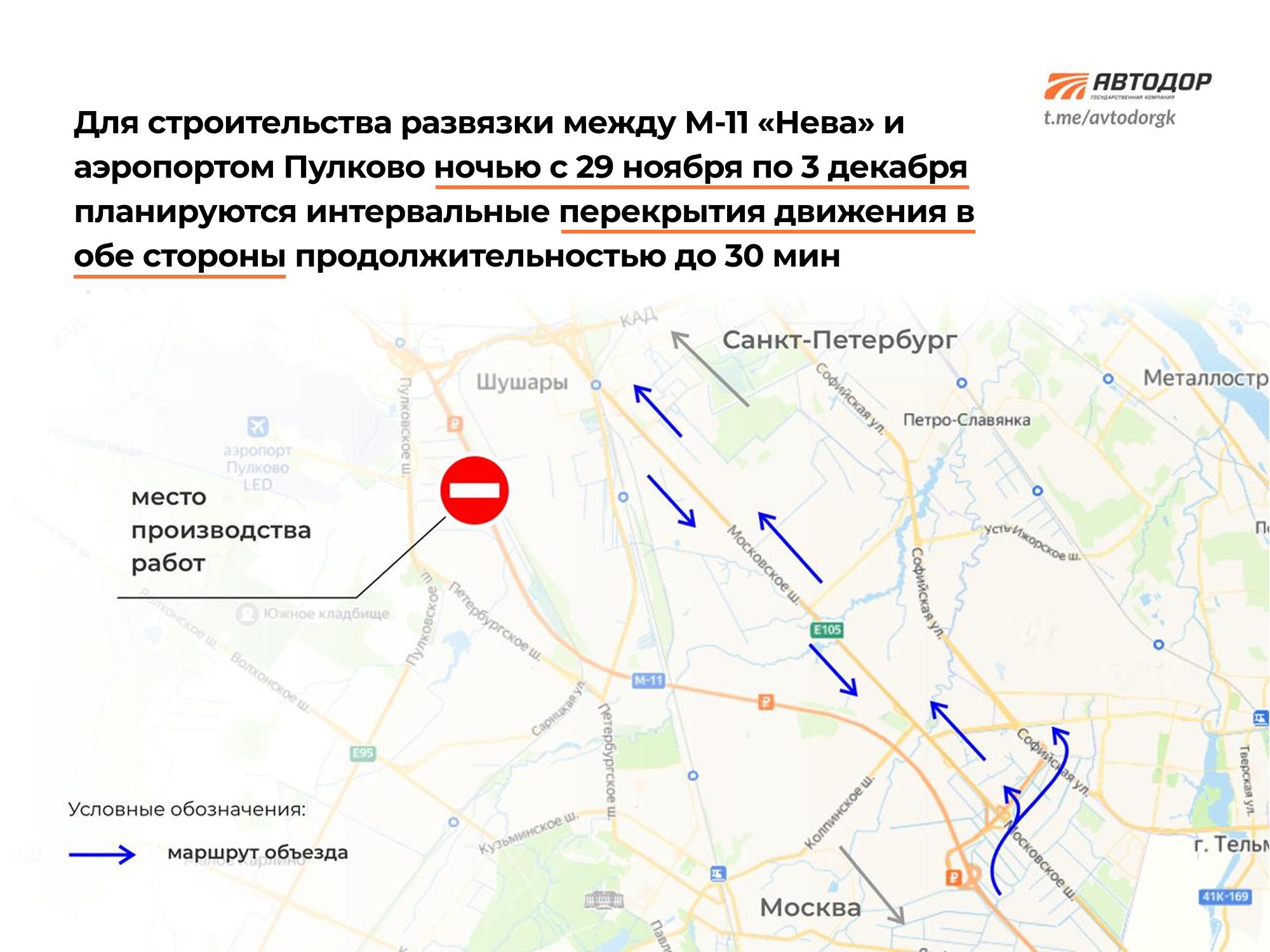 "Продолжается строительство транспортной развязки на М-11 "Нева" с подключением к аэропорту Пулково", — пояснили специалисты.
