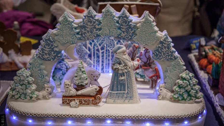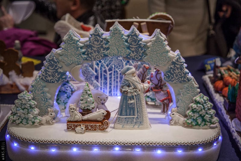 Арт-объекты, изготовленные мастерами-кондитерами из пряничного теста с художественной росписью глазурью, будут дополнены декоративной иллюминацией.