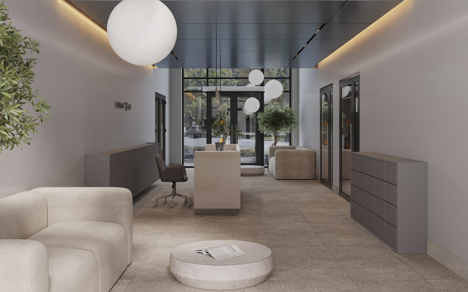 Сегодня МОП воспринимаются как среда, формирующая общий образ дома и задающая впечатление о проекте ещё до того, как покупатель знакомится с планировками. Это отражается и в архитектурных решениях. Если ранее на общественные зоны приходилось около 10–12% площади здания, то сейчас в проектах комфорт- и бизнес-класса этот показатель достигает 14–18%. Увеличение связано не с расширением коридоров, а с появлением новых функций: оборудованных лобби, лаунж-зон, переговорных, детских комнат, коворкингов, колясочных и продуманных зон для доставки. В некоторых проектах появляются и небольшие кафе в составе входных групп.