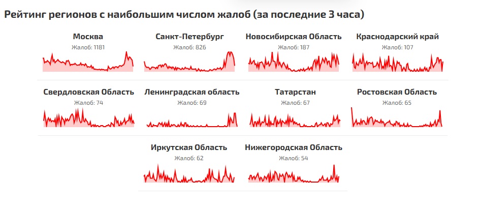 За час на перебои с Сетью пожаловалось 200 пользователей.