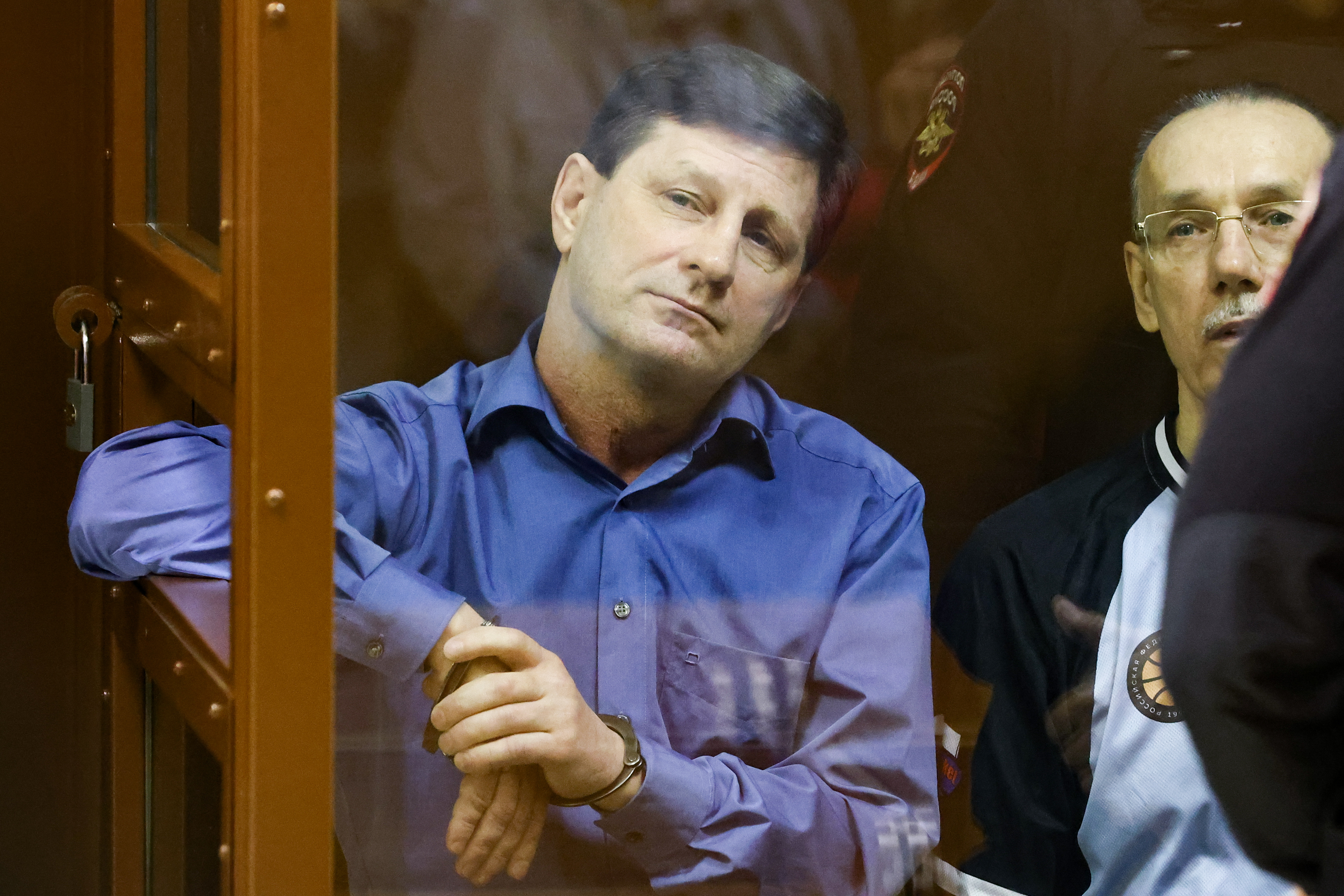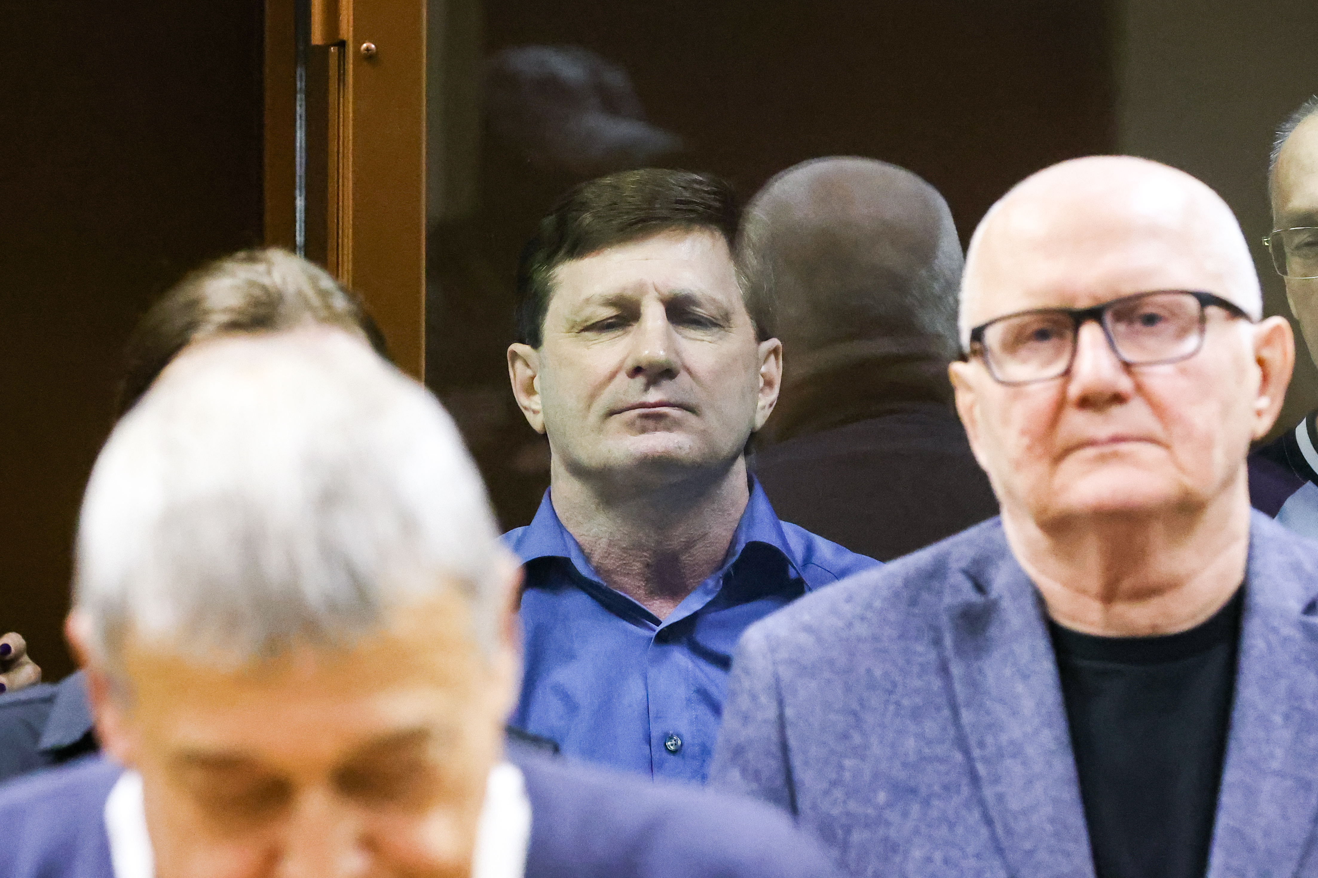 Экс-губернатор Хабаровского края Сергей Фургал (слева) в Бабушкинском суде во время оглашения приговора по уголовному делу о хищении свыше 2 млрд рублей у МСП-банка.