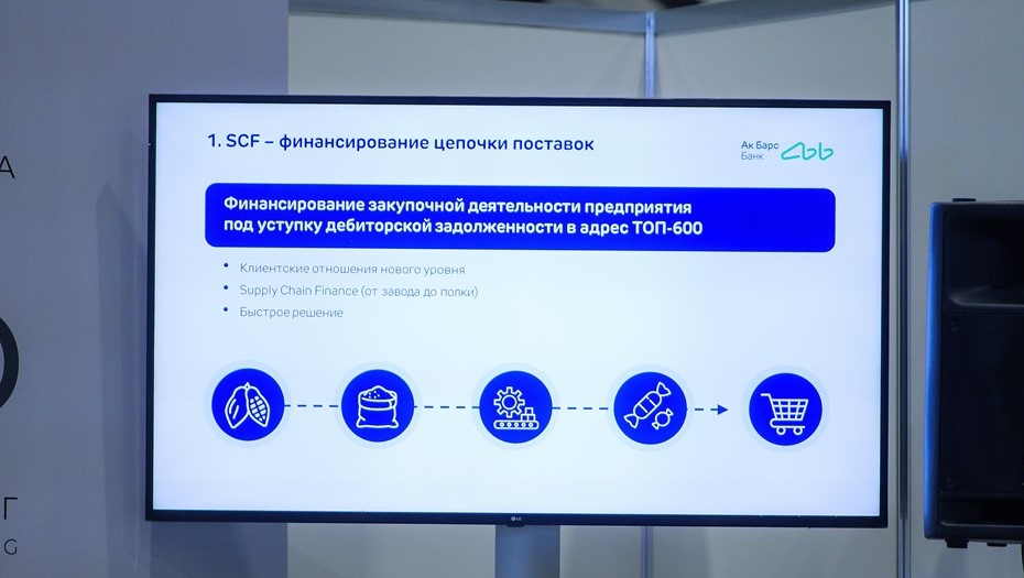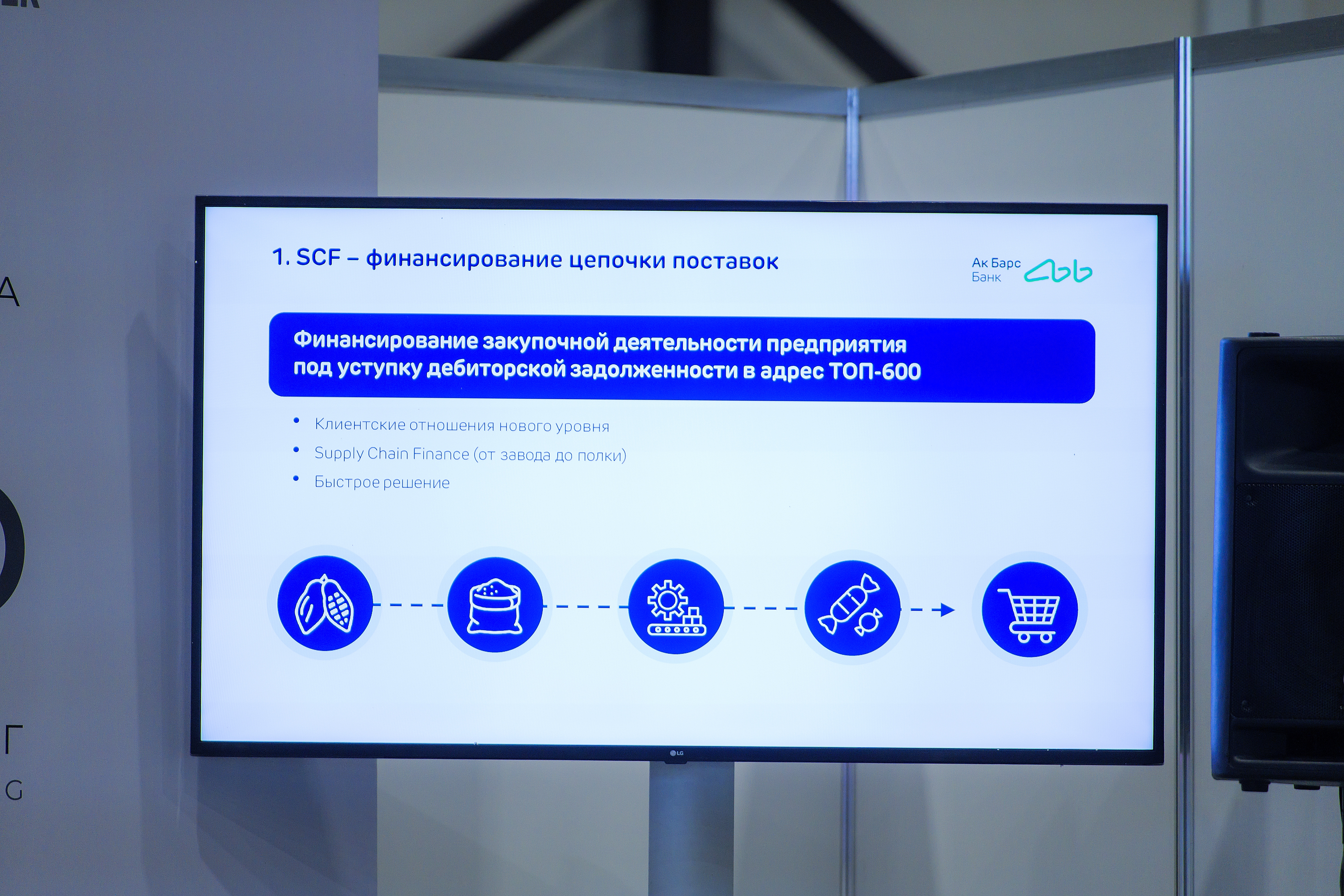 Этот инструмент, как пояснил представитель банка, также полезен для производителей, поскольку помогает им финансировать цепочки поставок. "Если вы, к примеру, производите конфеты, вам необходимо сначала закупить сахар, коробки, упаковочные материалы. Ак Барс Банк предоставляет вам стартовое финансирование для приобретения всего необходимого. Вы закупаете сахар, производите конфеты и передаёте их в торговую сеть. В свою очередь, под риском торговой сети, поставщик получает финансирование для закупки необходимых товаров для своего производства", — отметил спикер.