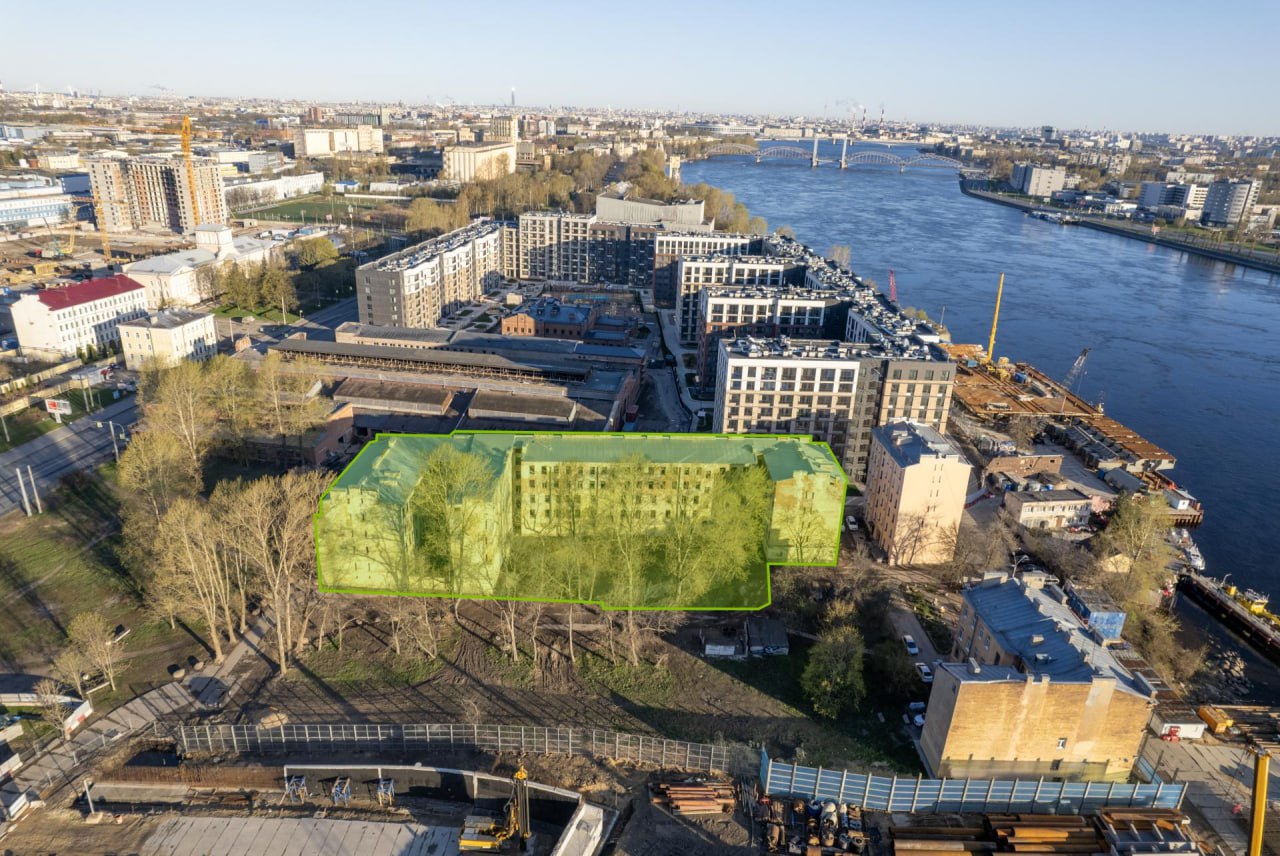 Первый расположен на берегу Невы, его площадь составляет 4,42 тыс. м2, участок занимает 0,26 га. Это заброшенное пятиэтажное здание, ранее его планировали реконструировать. Сообщается, что здание с участком в перспективе можно будет приспособить для размещения офисов или гостиницы. Торги стартуют 19 декабря, приём заявок осуществляется до 15 декабря.