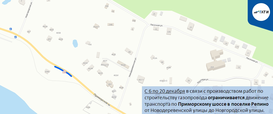 Перекрытия ожидаются и в курортном направлении. ООО "ПетербургГаз" строит газопровод на Приморском шоссе в посёлке Репино.