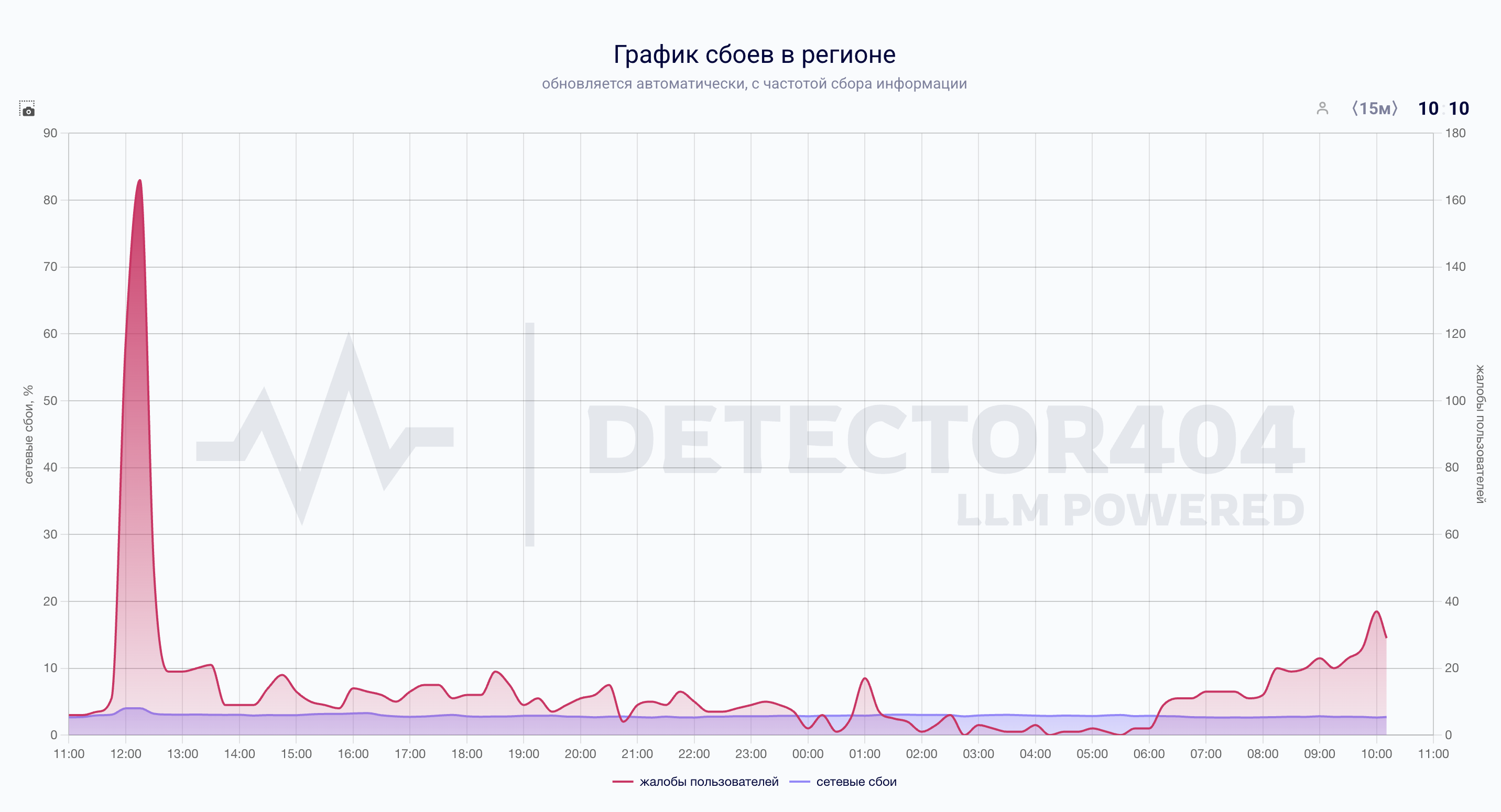 К 10:00 (и немного после) количество зарегистрированных жалоб на сайте достигло примерно 38-40 пользователей.