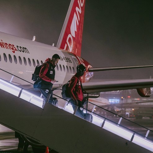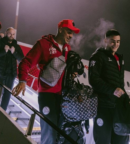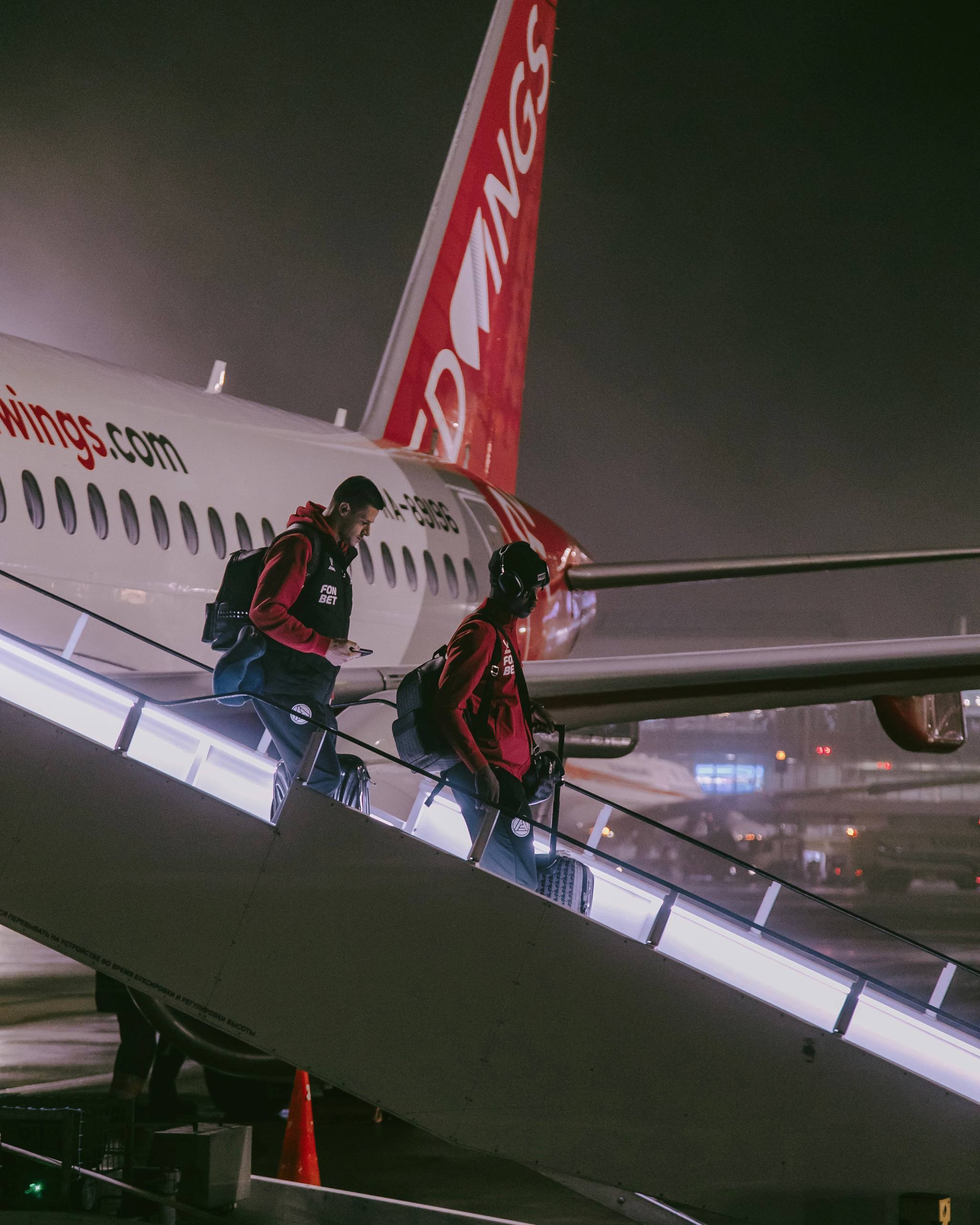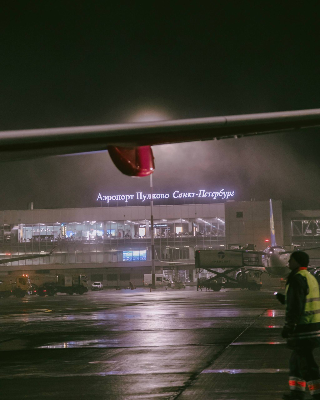 Команда опубликовала фотографии своего прибытия в аэропорт Пулково.