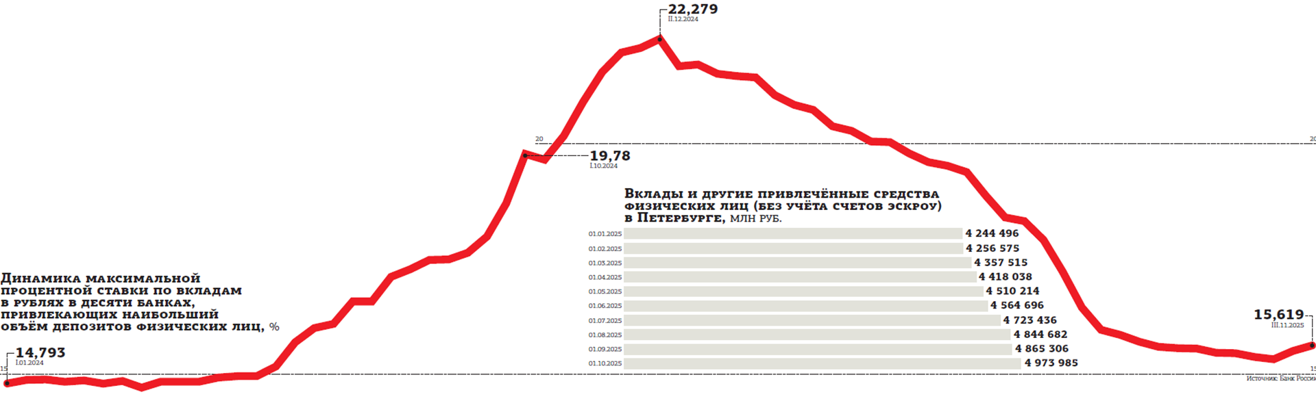 Рассчитывая на предпраздничный сезон, большинство банков, включая крупных игроков, в конце ноября — начале декабря подтянули ставки до 16% годовых. Так, ВТБ с 1 декабря поднял процентные ставки по депозитам на 4 и 6 месяцев.