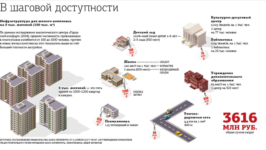 Сейчас Петербург относится к числу регионов с максимальной долей "натуральных" обязательств. Для этого в 2021 году при губернаторе Петербурга была создана Градостроительная комиссия (ГРК), которая устанавливает нормативы обеспеченности объектами социальной инфраструктуры для каждого жилого проекта. Всего за прошедшие 4 года состоялось около 22 заседаний ГРК, на которых прошло согласование проектов жилой застройки общей площадью, превышающей 11,3 млн м2.
