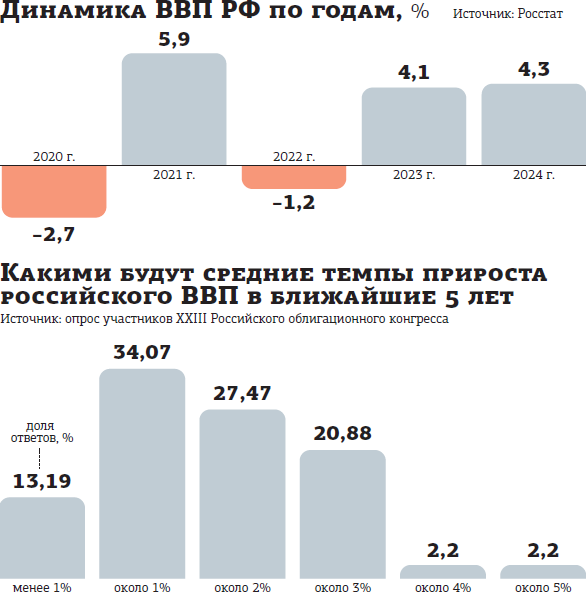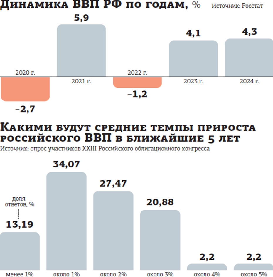 Участники состоявшегося в Петербурге XXIII Российского облигационного конгресса поделились своими прогнозами о том, что ждёт экономику РФ в ближайшем будущем.