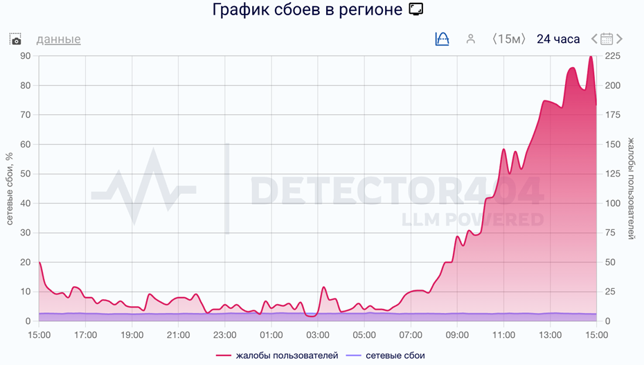 Согласно сервису Downdetector, на данный момент зарегистрировано 225 жалоб от петербуржцев.