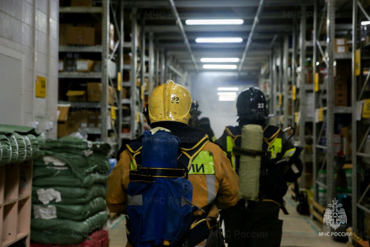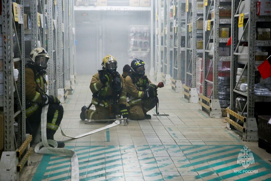 По легенде учений, возгорание произошло на складе торгового дома. Работники, обнаружив условный пожар, оперативно организовали эвакуацию посетителей и покинули здание.