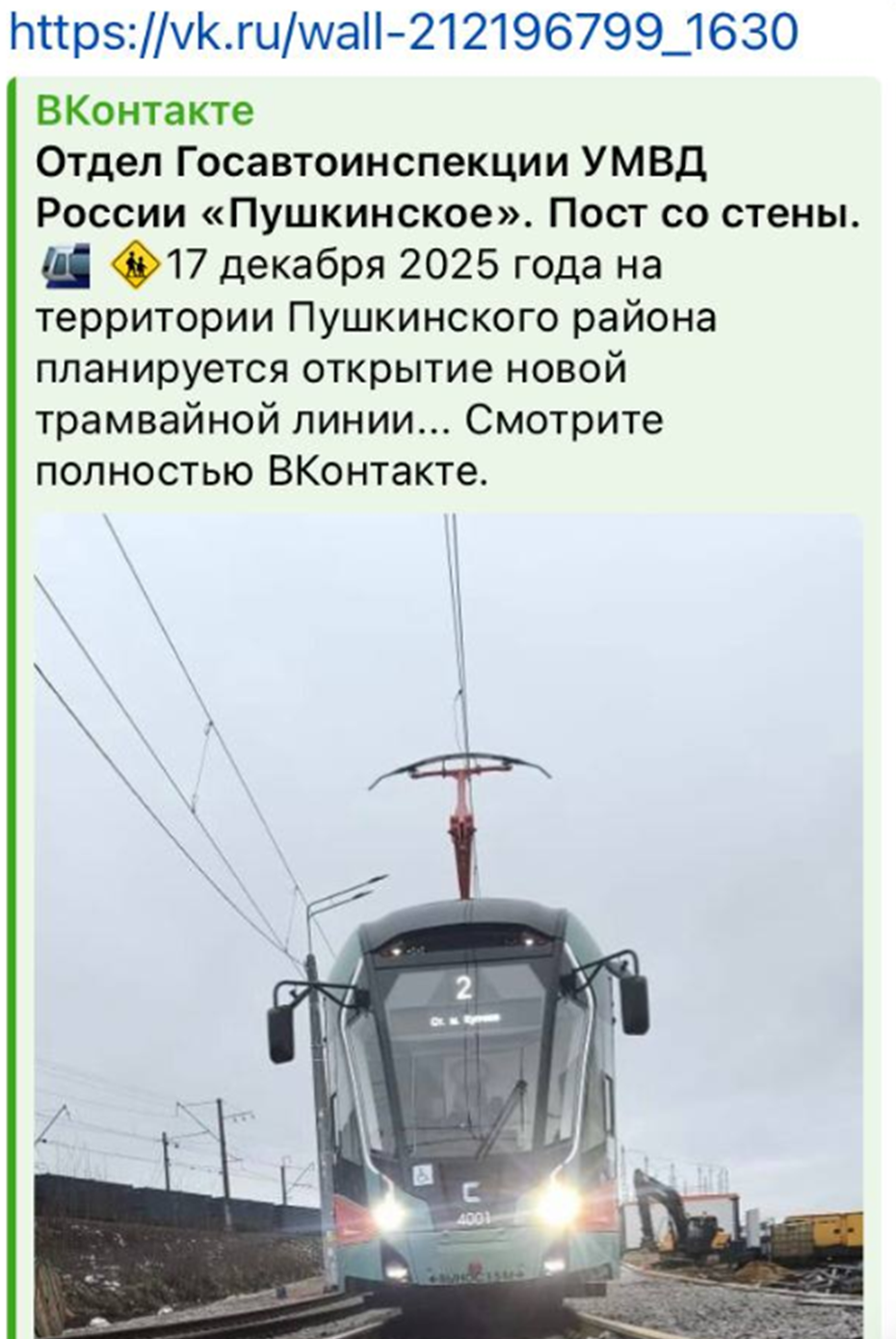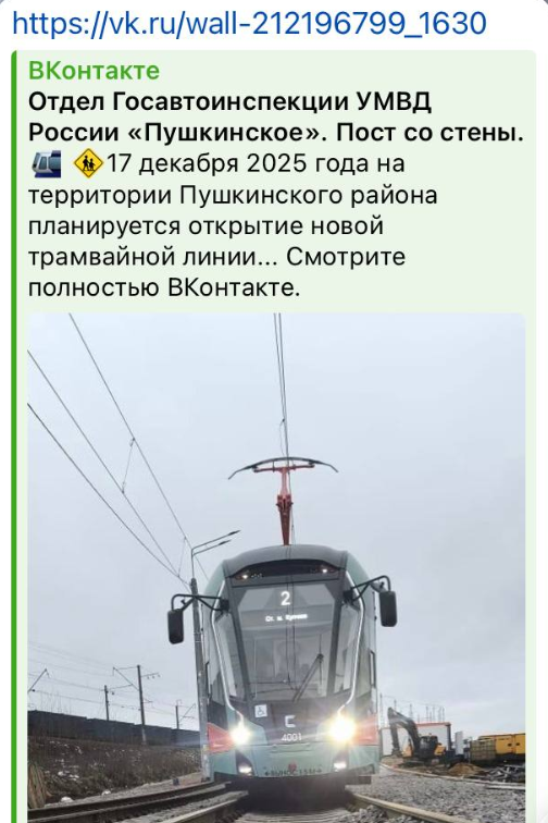 Городские власти неоднократно анонсировали запуск трамвая до конца этого года. Напомним, на выходных жители Шушар наблюдали очередную обкатку техники на участке, предназначенном для первого этапа. Тогда на линии были замечены как минимум четыре транспортных средства.