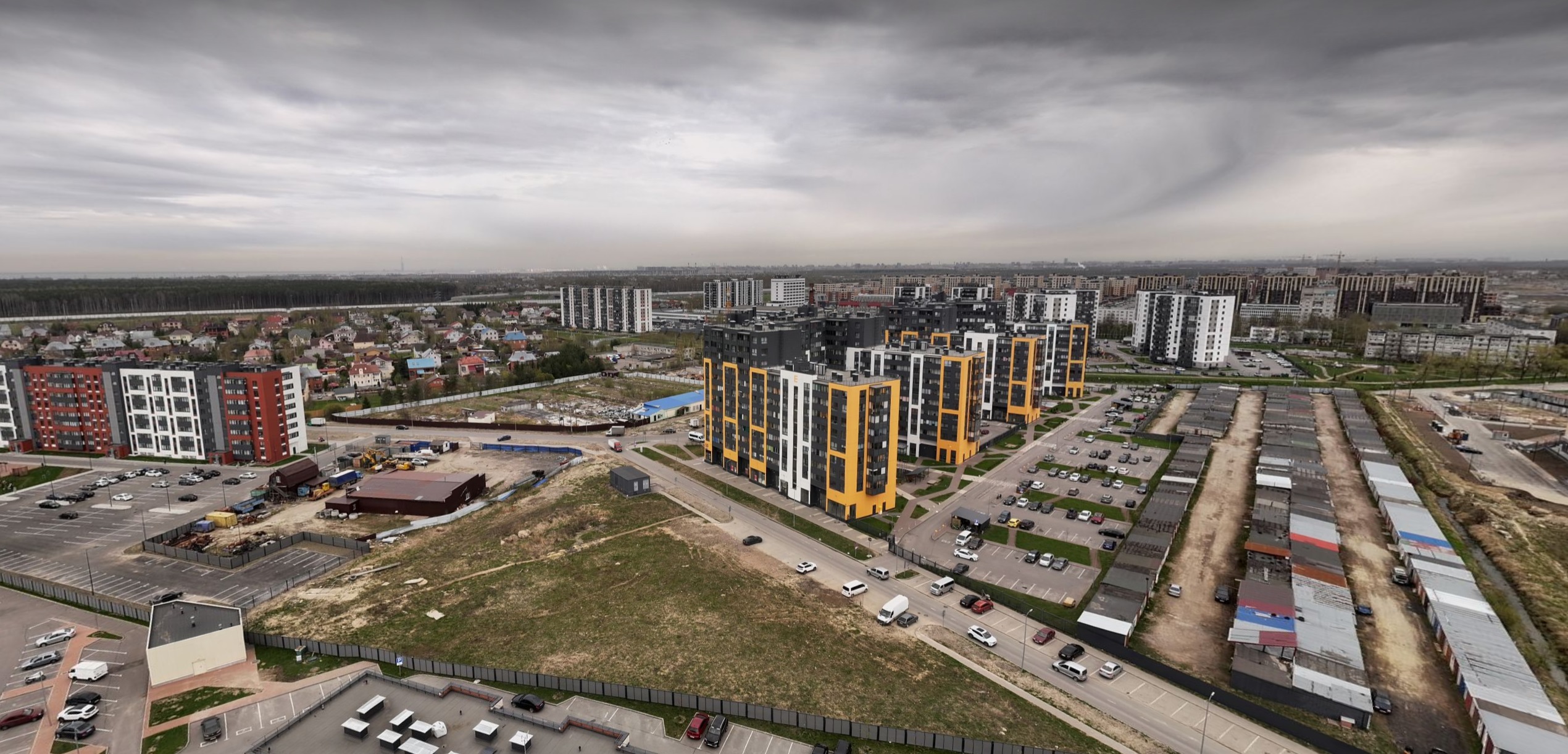 Северо-восточный сектор у станции метро "Девяткино" — крупнейший по объёму строительства пояс агломерации. До границы Петербурга отсюда менее километра, до центра — около 30–35 минут на электричке или машине без пробок. Именно здесь сосредоточился фронт основной массовой многоэтажной застройки: высокий этажный регламент, плотная сетка улиц и ставка на небольшие форматы квартир.