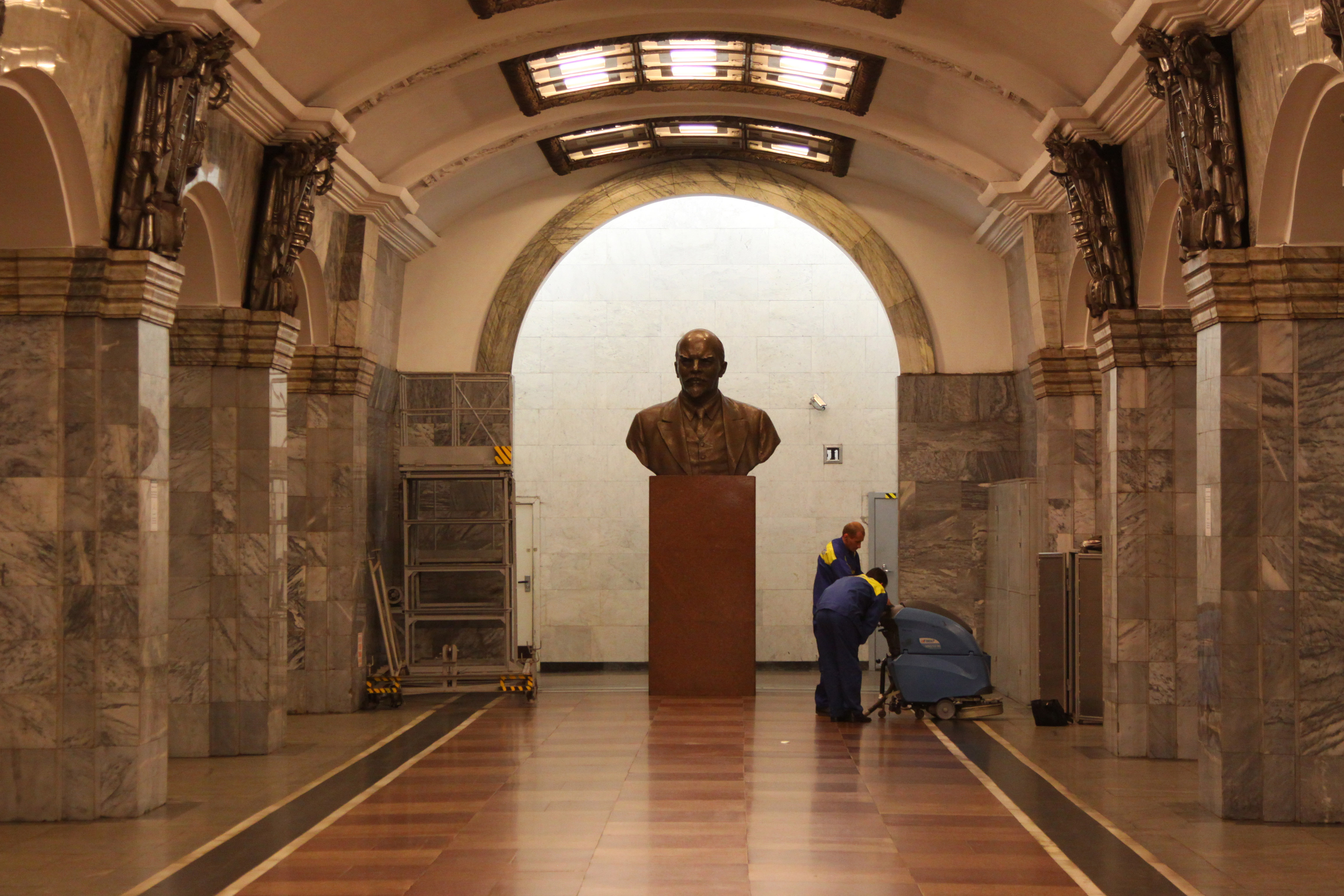 Бюст Ленина перенесли в одну из арок станции "Кировский завод" Кировско-Выборгской ("красной") линии петербургского метрополитена, сообщает корреспондент "Делового Петербурга".