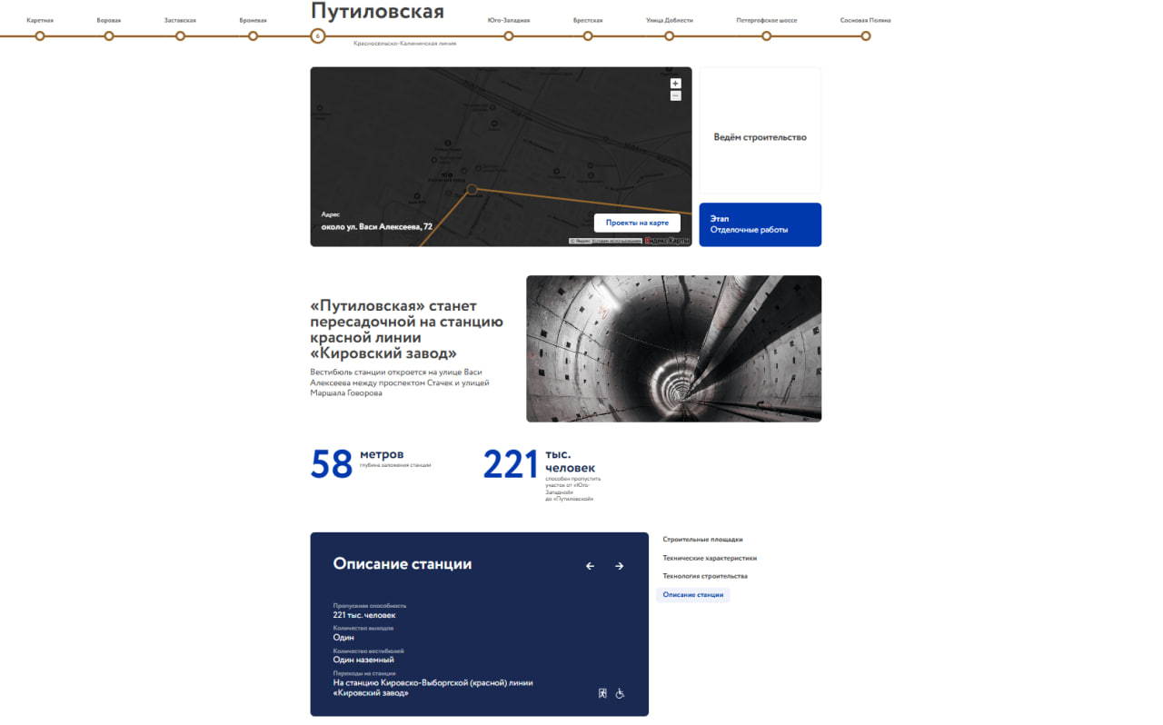 "Отрезок будет сдаваться целиком, включая также и пересадочный узел со станции "Кировский завод" на "Путиловскую", с полным комплексом пусконаладочных работ всех систем на всех объектах, которые войдут в состав пускового участка", — поясняли метростроители.