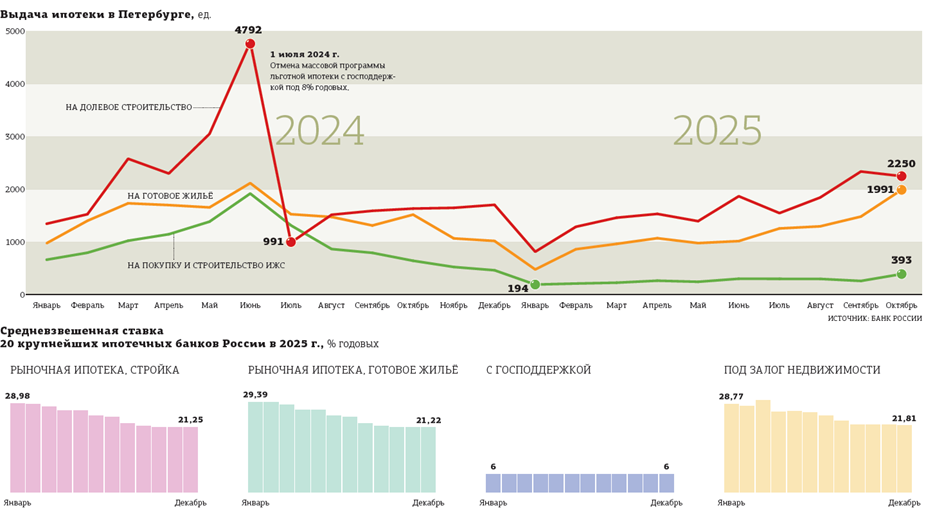 Основным драйвером остаются льготные государственные программы. Их доля продолжает доминировать и по итогам 2025 года в целом по России составит около 75%. При этом цифровизация процессов позволяет около 70% ипотечных сделок в Петербурге проводить в дистанционном формате.