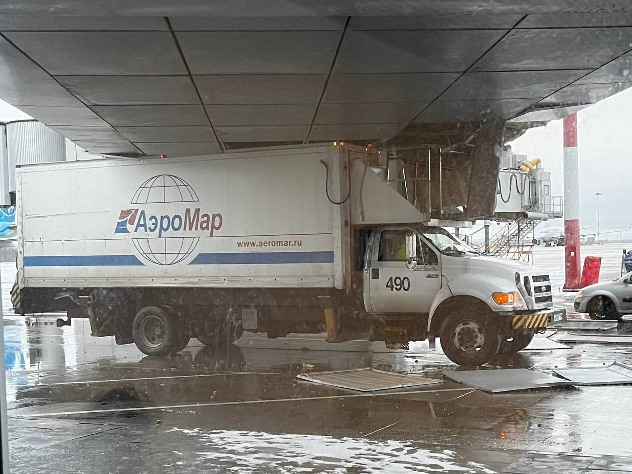 Стало известно, что машина компании, обеспечивающей рейсы питанием, на прошла по высоте. Никто не пострадал, пишет 78.ru.
