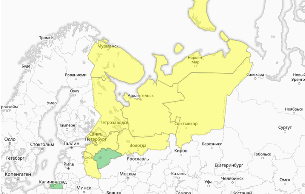 В Ленинградской области также ожидаются порывы сильного ветра, 15-17 м/с. Период предупреждения о неблагоприятном погодном явлении здесь установлен с 13:00 25 декабря до 18:00 26 декабря.
