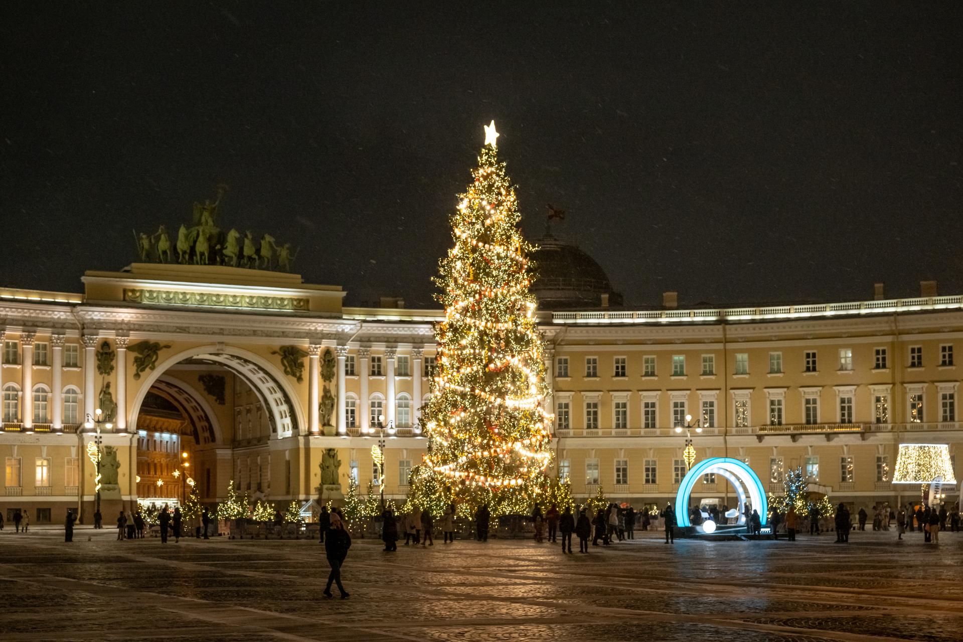 20 декабря в Петербурге на Дворцовой площади зажглись огни на главной новогодней ёлке. Иллюминацию включили под руководством Деда Мороза из Великого Устюга. Нынешняя праздничная ёлка возрастом 120 лет, высотой 30 метров, диаметр кроны по нижним веткам — 10 метров, вес — 10 тонн.