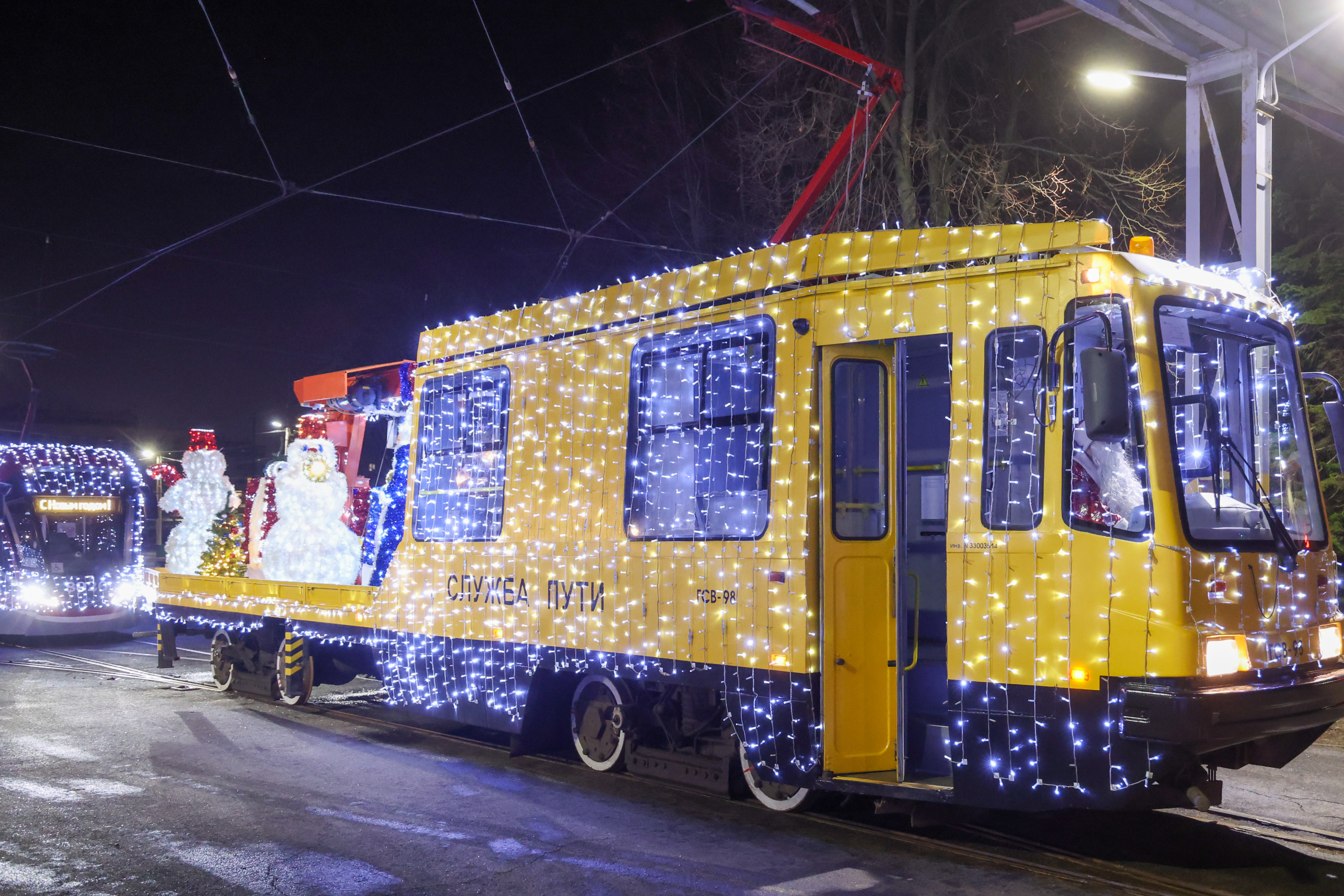 Новогодний транспорт выехал на городские маршруты в рамках акции "Горэлектротранса" "Волшебный трамвай".