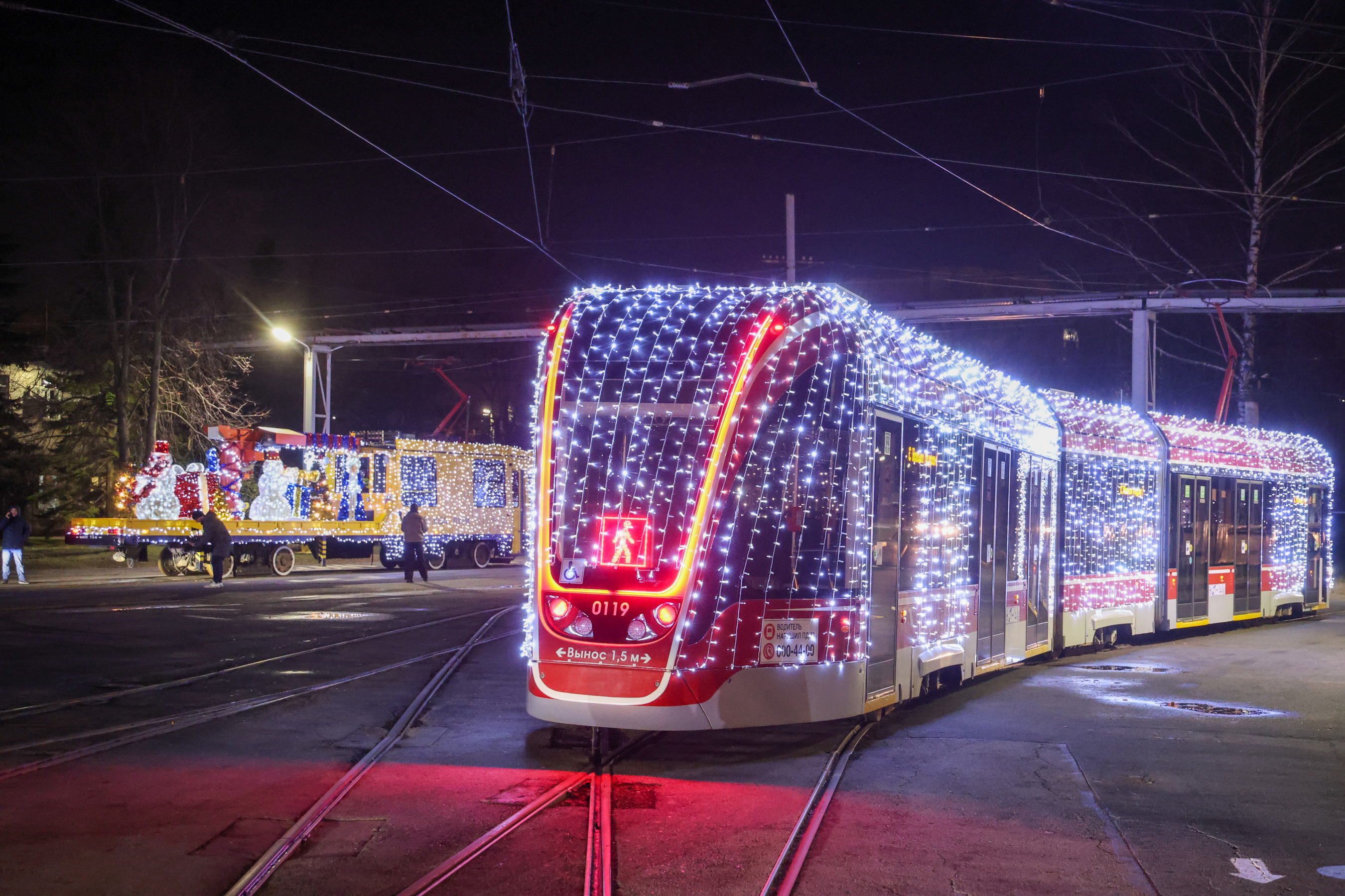 "В ежегодной новогодней акции "Горэлектротранса" "Волшебный трамвай" участвуют наши новейшие трамваи "Витязь-М" и троллейбусы. Трамваи-светлячки будут работать на севере и юге на самых популярных маршрутах № 100 и 60. Яркие вагоны уже стали нашей новогодней традицией и доброй приметой", — отметил глава города.
