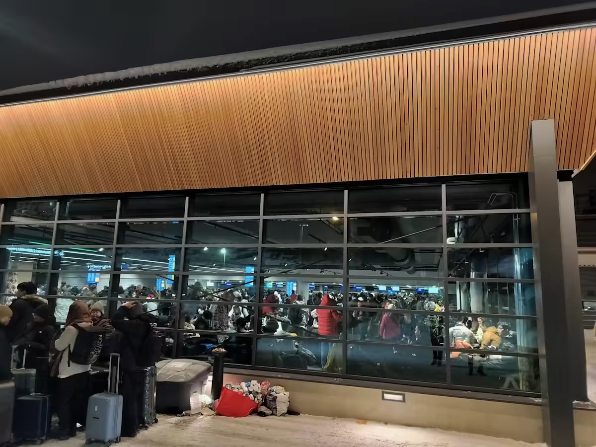 Путешественники сообщали о крайне напряжённой ситуации: все внутренние помещения аэровокзала оказались забитыми до отказа, повсюду наблюдались огромные очереди (даже в кафе ожидание достигало 40 минут), повсеместно плакали маленькие дети — в Лапландию люди едут целыми семьями на встречу с Санта-Клаусом.