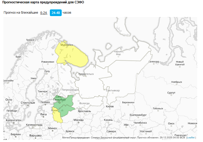 В ближайшие несколько дней региональный Гидрометцентр не ожидает погодной опасности. Данные на утро 29 декабря