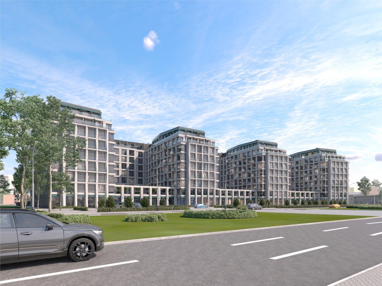 Отмечается, что основной композиционный приём здания — "волна", что отражено в ступенчатых верхних этажах и светло-сером цветовом решении. Проект предполагает создание трёх открытых дворов-курдонёров, ориентированных на юг.