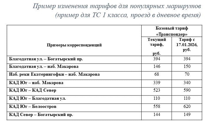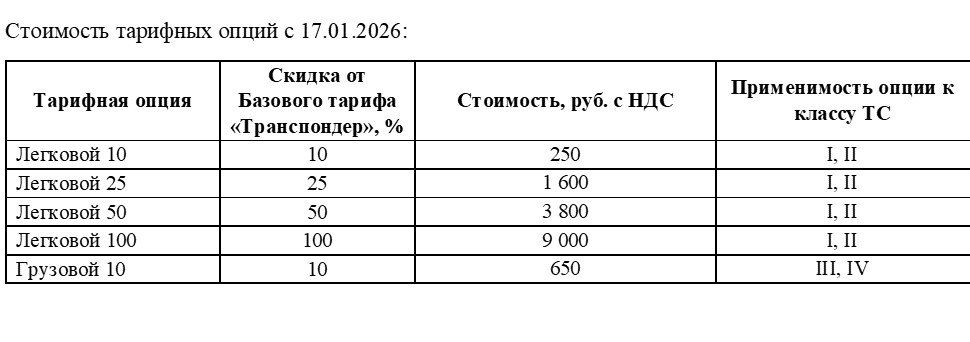 "С 00 часов 00 минут 17 января 2026 изменяются тарифы ЗСД при проезде с транспондером, стоимость тарифных опций, цена продажи и аренды транспондера", — подтвердили в пресс-службе.