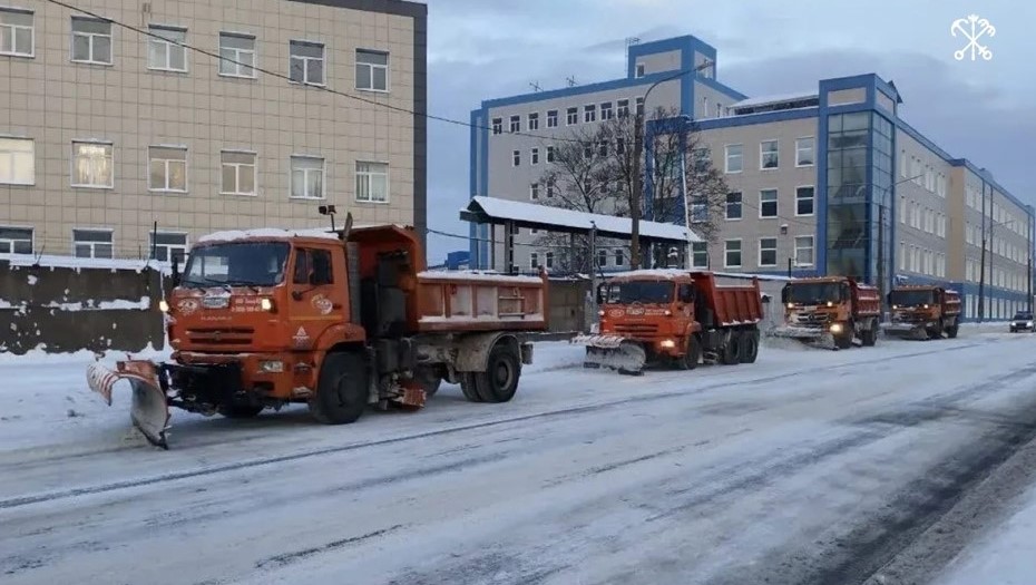 Комитет по ЖКХ Ленобласти также передаёт, что в связи со снегопадами на территории всего региона уборка идёт круглосуточно.
