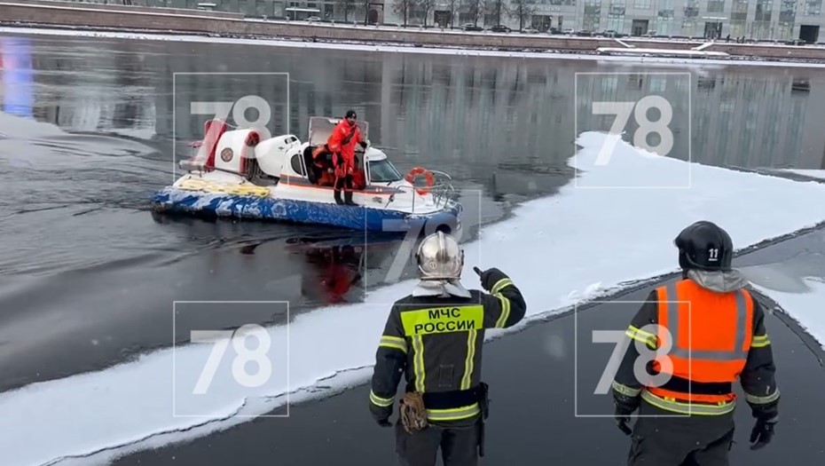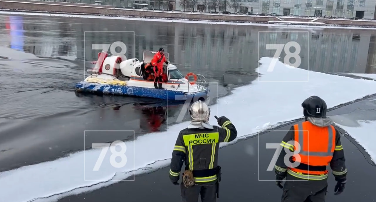 В Петербурге спасатели проводят операцию по вызволению из воды упавшего человека.