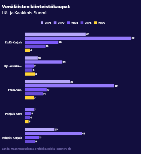 В числе самых заметных сделок с участием россиян фигурирует торговый центр Zsar, сделка по которому, при этом, не была закрыта до конца 2025 года. Детский летний лагерь в Миехикяля продали минувшим летом российской компании за 40 тыс. евро. В ноябре отель "Ранталинна" в Руоколохти обрел нового владельца — канадско-азербайджанского бизнесмена.